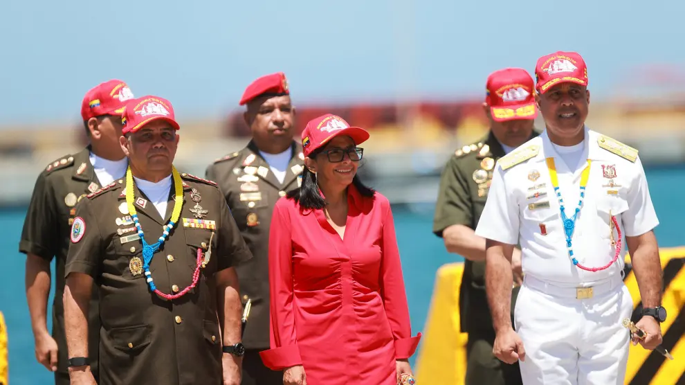 Desde el muelle 23 del Puerto Internacional de La Guaira, la Presidenta Encargada de la República Bolivariana de Venezuela, Delcy Rodríguez y Comandante en Jefe de la Fuerza Armada Nacional Bolivariana (FANB) encabezó la ceremonia oficial de despedida y zarpe del Buque Escuela «Simón Bolívar» (BE-11).